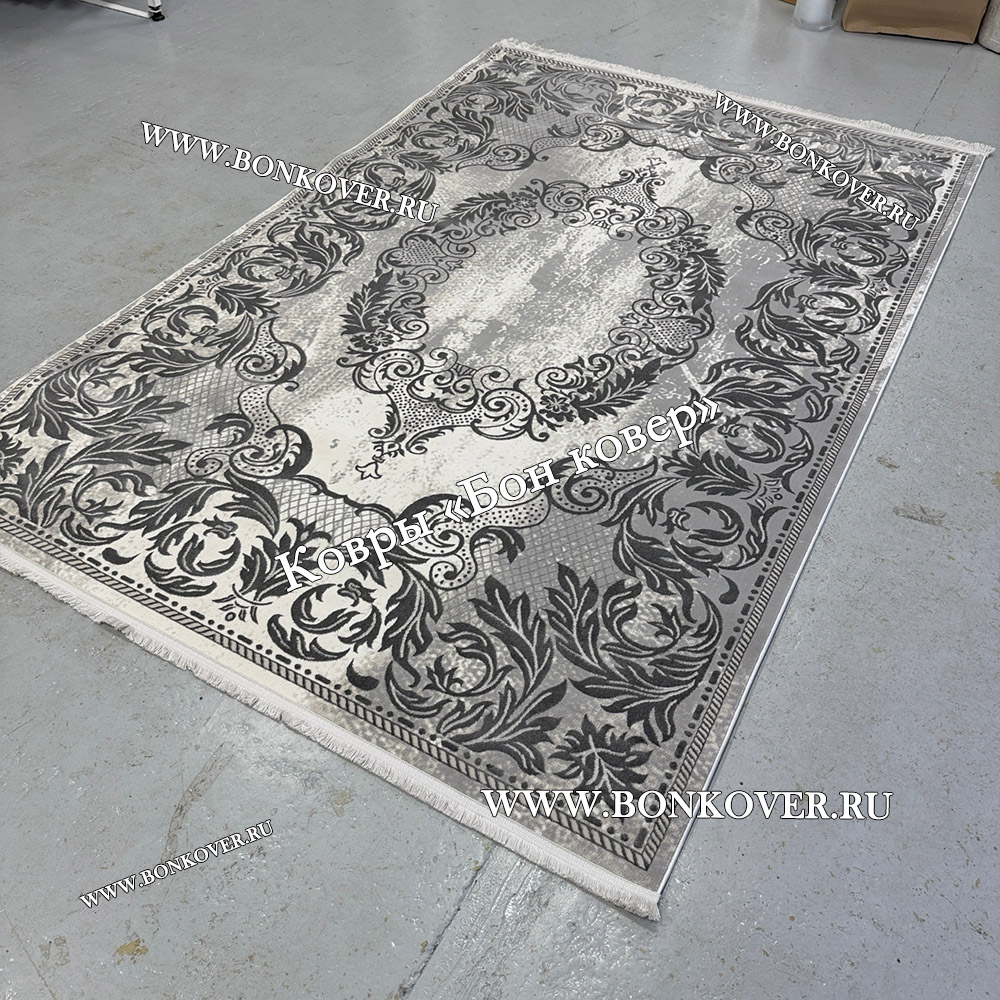 Красивый Ковер Для Гостиной Медальон Дизайн 30544 Серый наполняет интерьер комнаты теплом и уютом, гармонично сочетает в себе изящество и стиль. Он соткан из современных материалов, прочный и долговечный.