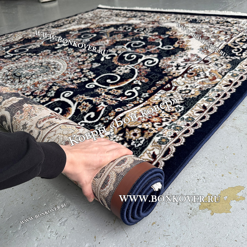 Шикарный Ковер Для Гостиной Медальон Дизайн 8789 Синий наполняет интерьер жилого пространства теплом и уютом, гармонично сочетает в себе изящество и красоту. Он соткан из экологически чистого сырья, комфортный и долговечный.