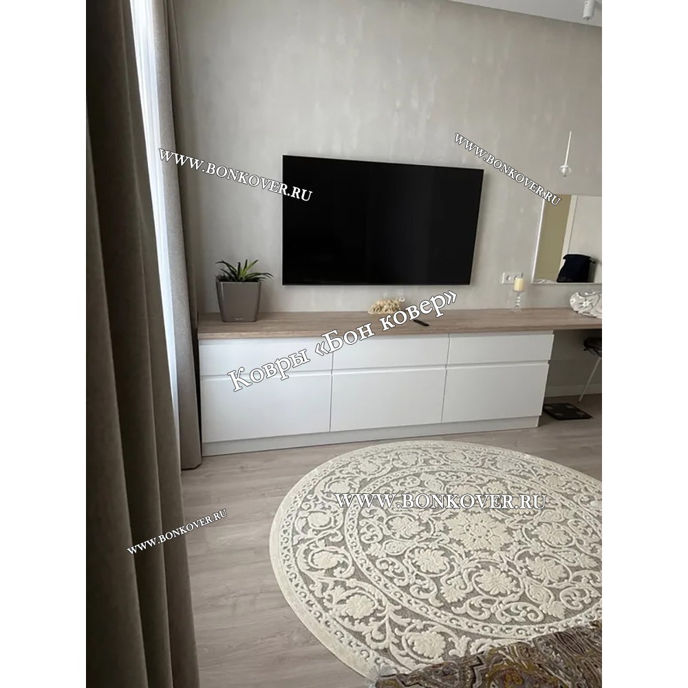 Импозантный Круглый Ковер Для Гостиной Из Арт Шелка Дизайн 30541 наполняет интерьер гостиной теплом и уютом, гармонично сочетает в себе изящество и стиль. Он изготовлен из высококачественных материалов, прочный и долговечный.